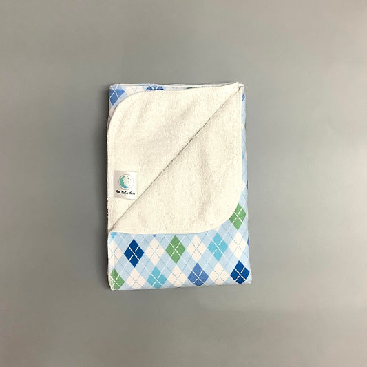 Flannel piqué lined with waterproof fabric with terry (towel fabric) on top.