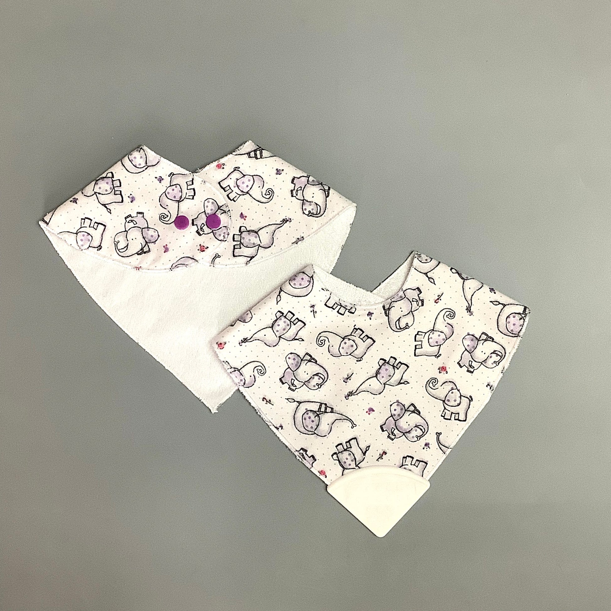 Purple elephant teething bib