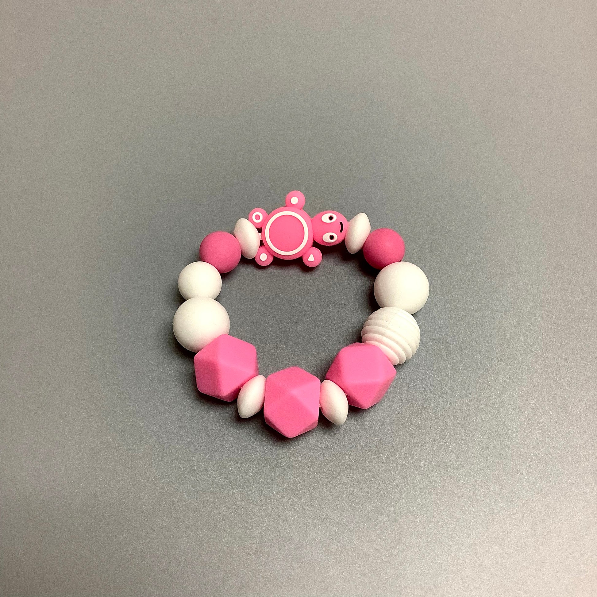 Silicone awakening rattle made with several silicone balls of different colors and different sizes with a bigger teether.