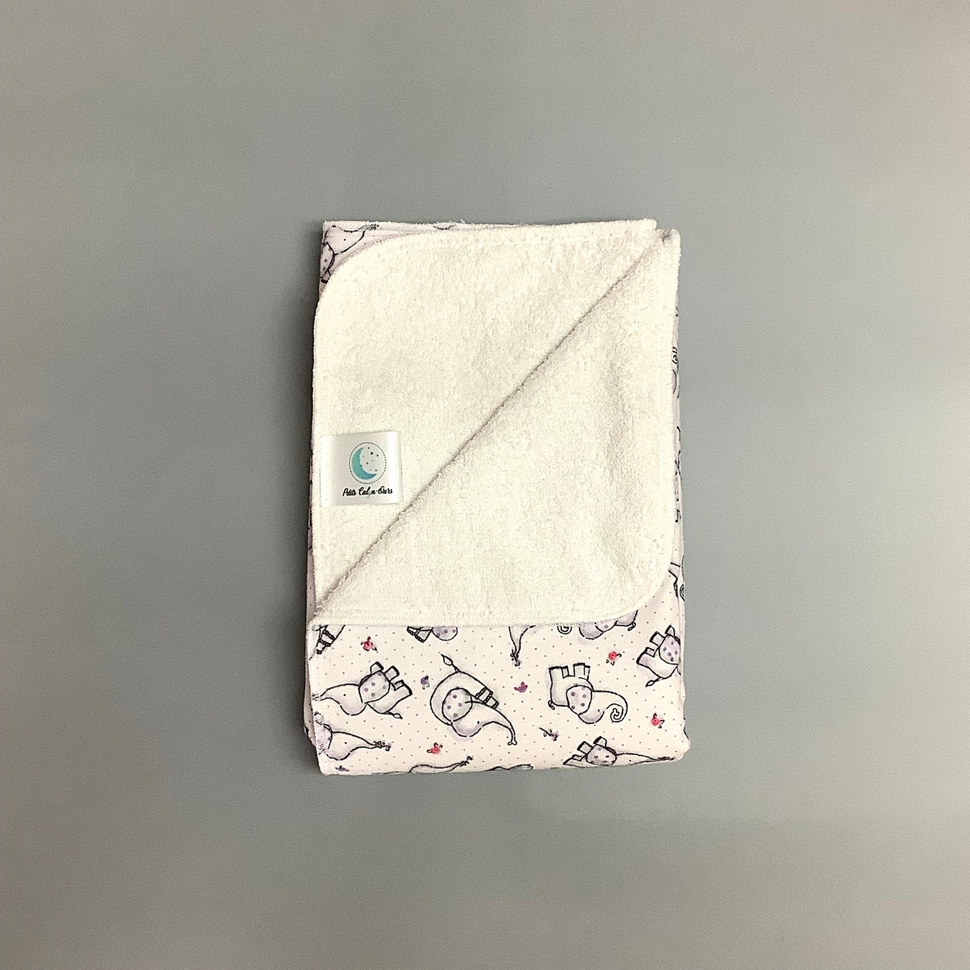 The piqué is a towel lined with a waterproof fabric with a flannel underside. Very useful for changing the baby everywhere on a warm and absorbent fabric. The piqué can also simply be used as a towel.