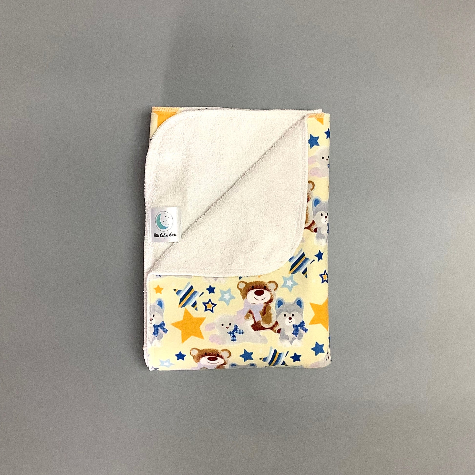 The piqué is a towel lined with a waterproof fabric with a flannel underside. Very useful for changing the baby everywhere on a warm and absorbent fabric. The piqué can also simply be used as a towel.