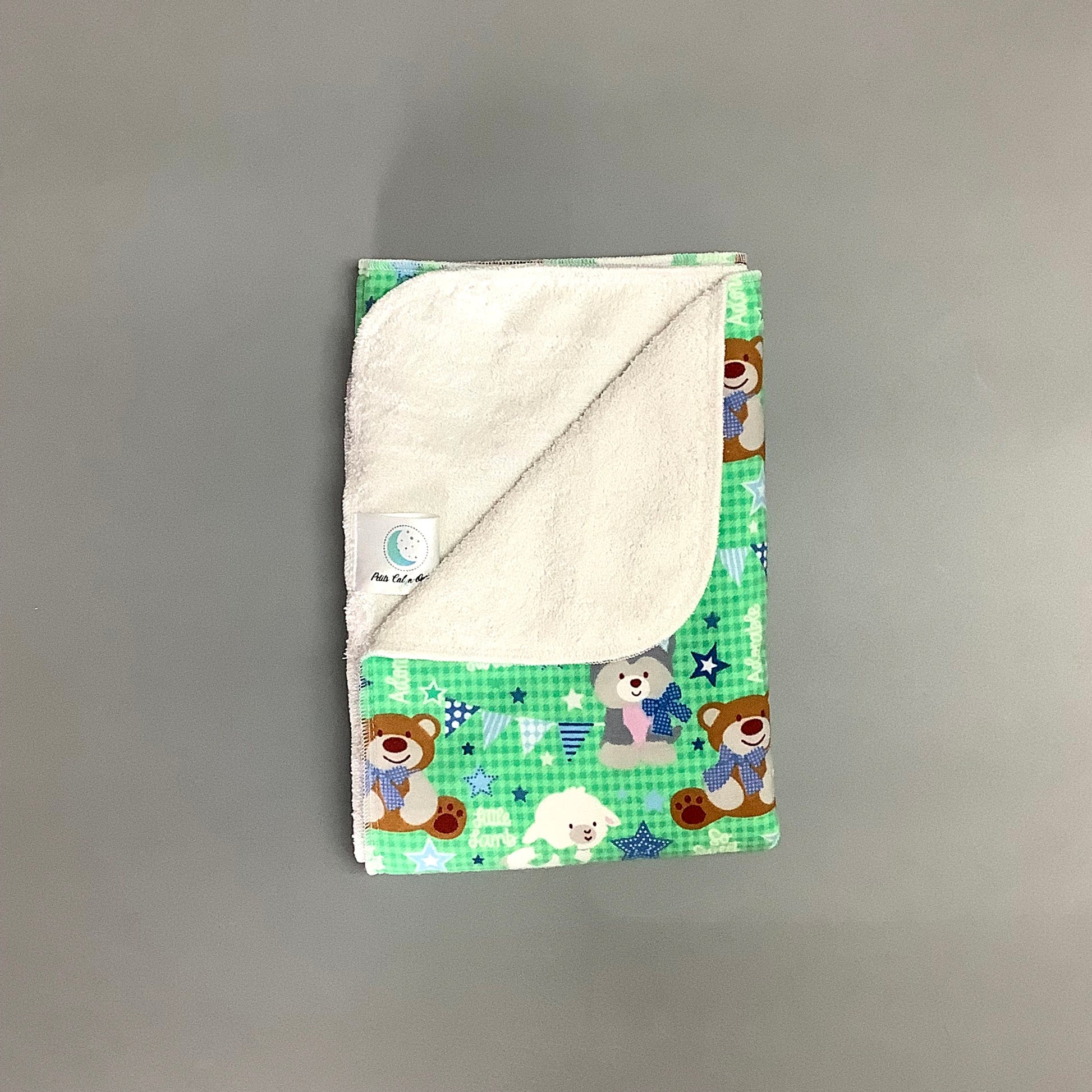 The piqué is a towel lined with a waterproof fabric with a flannel underside. Very useful for changing the baby everywhere on a warm and absorbent fabric. The piqué can also simply be used as a towel.