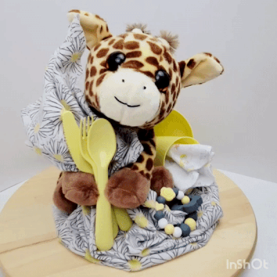 Impressionnez les futurs parents avec un ensemble cadeau original dans sa présentation, avec tous les produits essentiels comme des couches, des débarbouillettes, des bas et encore plus!