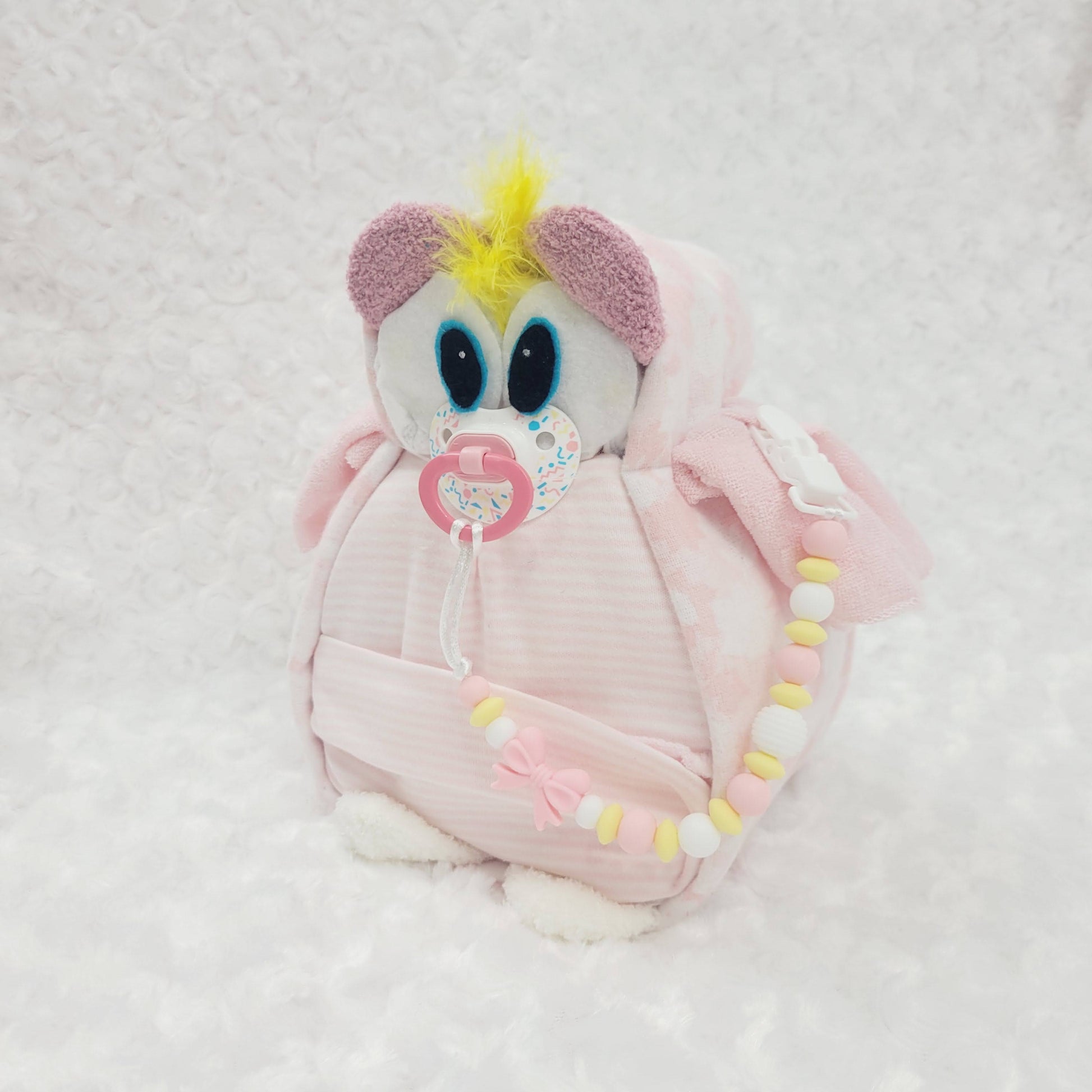 Baluchon de couche en forme de hibou parfait pour donner à un shower de bébé.
